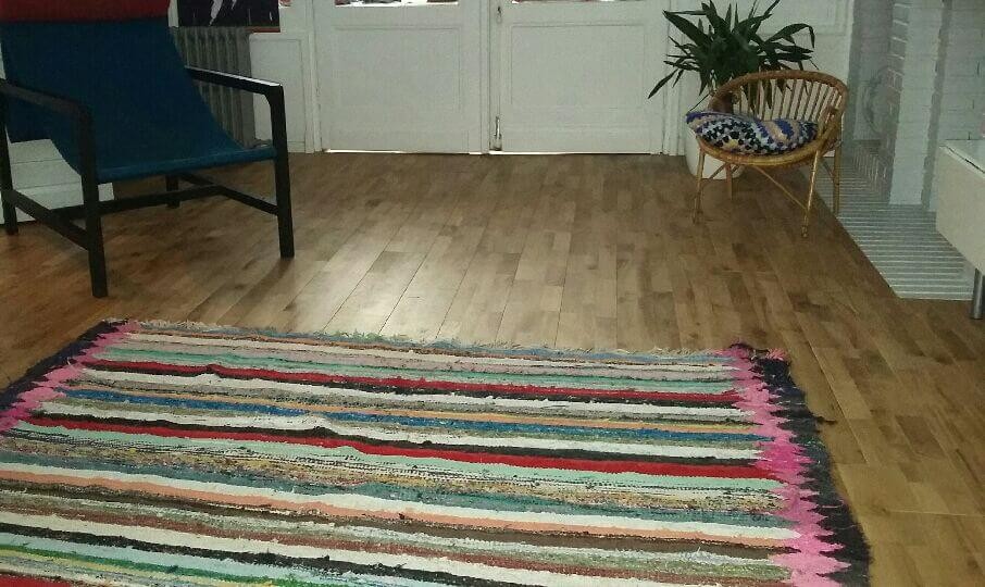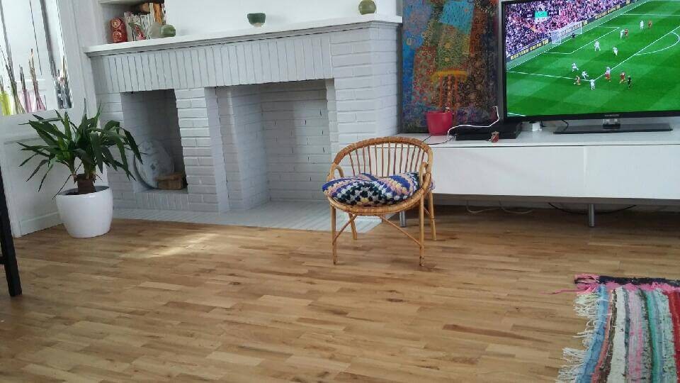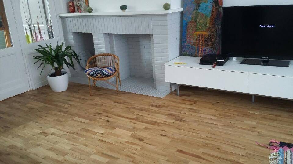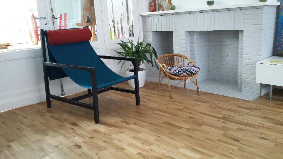 Le parquet est simplement installé au sol, sur une sous-couche, avec les clips en aluminium qui permettent de maintenir les lames entre elles. Sans colle, ni clou, ni vis !