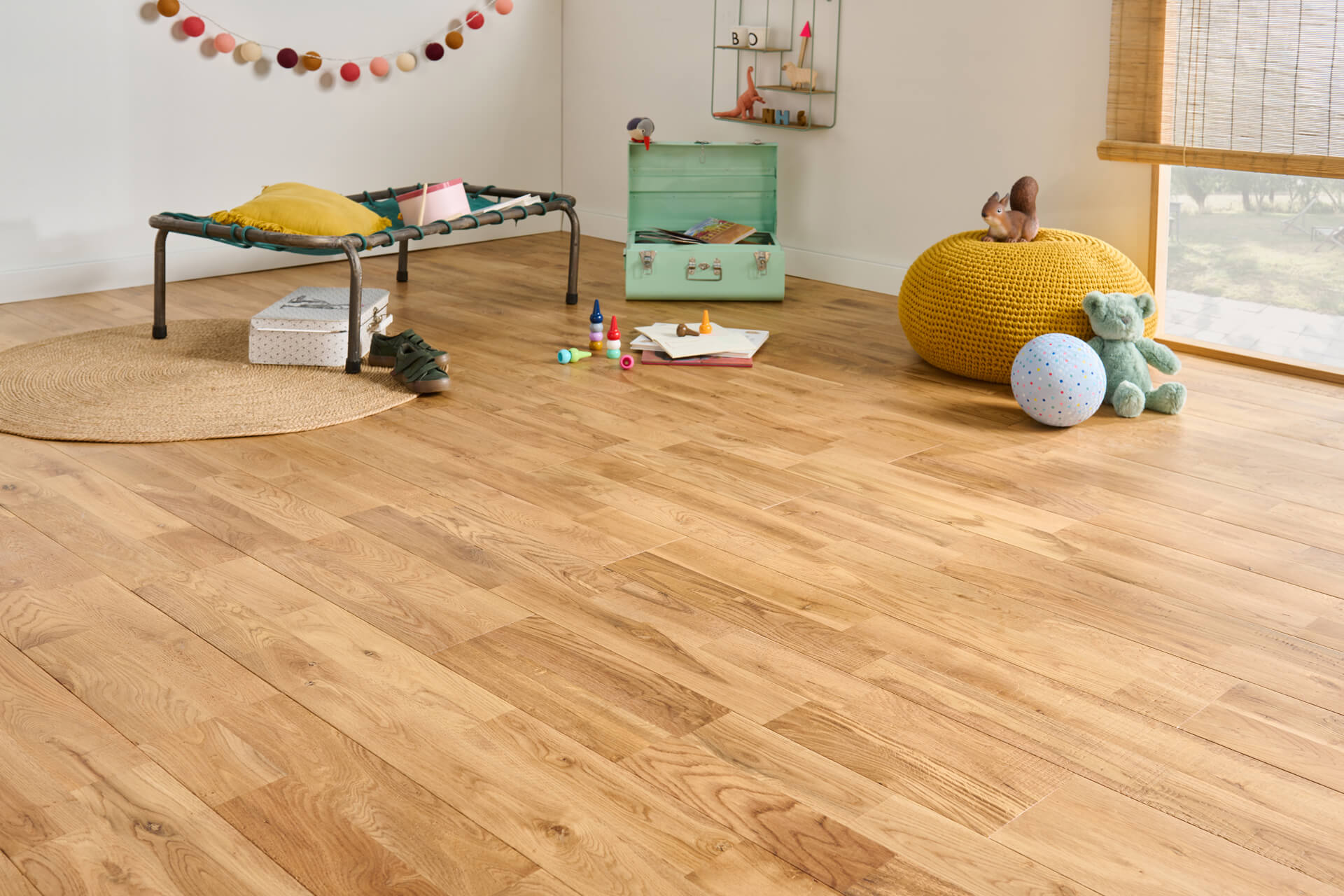 Le parquet est simplement installé au sol, sur une sous-couche, avec les clips en aluminium qui permettent de maintenir les lames entre elles. Sans colle, ni clou, ni vis !