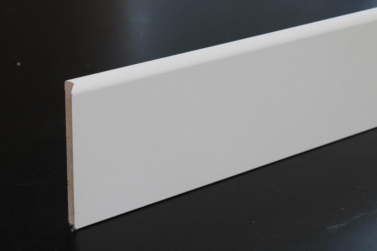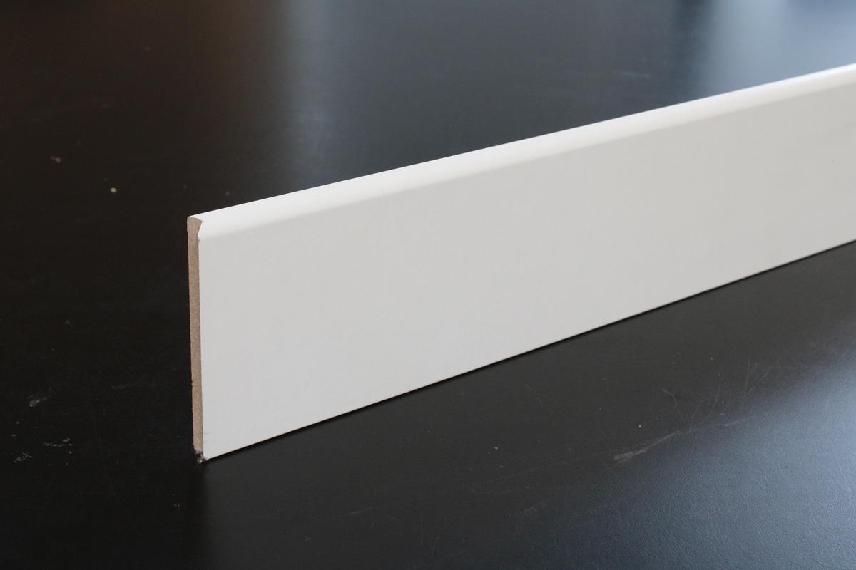 Plinthe médium (MDF) revêtue blanc – 10 x 100 mm – 1 bord arrondi ou bords droits
